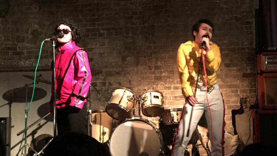 秦:そのイベントではお金はもらってないです、どっちかというと払ってるんじゃないか(笑)。個人の人が年1やっている門司港のレトロ地区でやっている音楽系イベントがあってそれに出たら、それを見に来て面白いと言ってくれた人がご自身のお店のイベントで呼んでくれたり。親不孝通りにあったバーでもマイケル・ジャクソンのイベントでマイケルとポール・マッカートニーになったりもしました。そこで関りを持った歌手の方と今度は大橋駅前でプロレスリングの上で小芝居したりも。