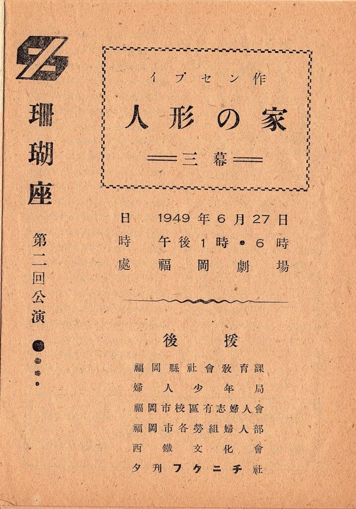追記:貴重な資料を発見した。1949年6月に珊瑚座が「第二回公演」としてイプセンの『人形の家』を福岡劇場にて上演していたという資料である。演出は榊山圭介。総務(スタッフ)として、姓は異なるが「門路能三」という名がある。上述の、その後を引き継いだ中村能三と名が同じだが同一人物かどうかは不明。なお、この公演の裏方スタッフにも出演者にも檀一雄の名はないが(入江杏子の名はある)、「珊瑚座同人」という一覧には檀一雄の名は連なったままである。福岡を離れてもこの時点では在籍はしていたようだ。