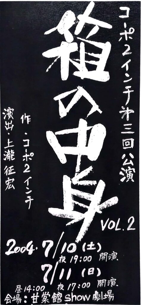 鶴賀:してないです。中村公美さんとの二人のユニットでした。彼女が代表で僕が作演出。劇団形式じゃなく…当時はあまりなかったですね。