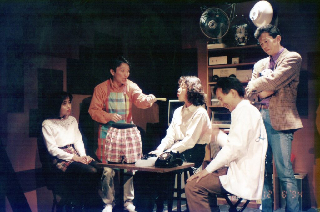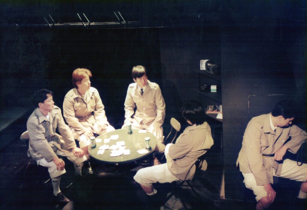 彰田:劇作家協会の劇作家大会を北九州でやるけれども、実は福岡からみんな行ってるんですよって。だから福岡から北九州に出向くよりも、福岡で大会の企画・運営について話し合いませんか、ついては僕らの劇団のそのシアポケがあるからって言って、斎藤燐さんが来たんですよ。その時に『上海バースキング』は最初持ち劇場(ごや)でやったんですかって言ったら、いや、ここの持ち劇場(ごや)より狭いところでやったって言って。「まだここはタッパがあるからいいよ」って。