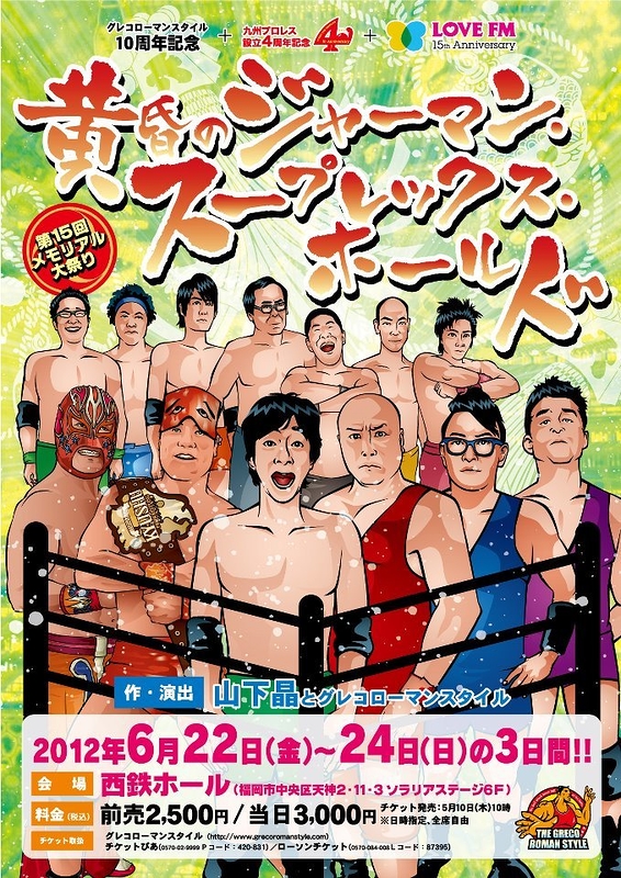 山下:最初、領収書を書いてもらう時に書きにくいやつにしようやと(笑)「薔薇檸檬」とか(笑)。どんな字書くんですかと言われた時に自分たちも書けないという(笑)。それでその時、名前を付けるセンスのある知人がいて、「グレコ&ローマン」ってどうかと言われたんです、でも、「どっちがグレコ? どっちがローマン?」とか言われそうだったんで(笑)、シンプルに。僕はプロレスは知らなかったんですけど、調べてみると「フリースタイル」と「グレコローマンスタイル」というのがあって、グレコの方は下半身に触れてはいけないとか技は投げ技がいけないとか色々制約があって。芝居ってそうだなと思って。色々な制約の中でそれぞれの力を磨いていくみたいなところが。それでいいなぁと思って。後々に自分の団体検索しようとしたらアマレスのグレコローマンスタイルばかり出て来るんで、えらいことになるんですけど(笑)。