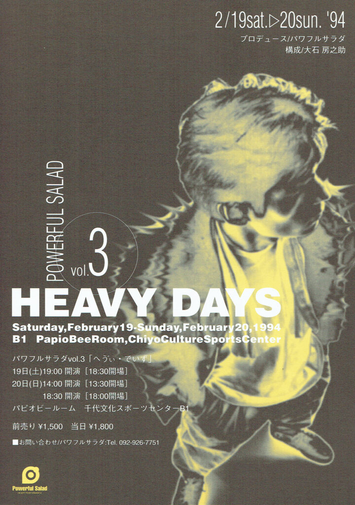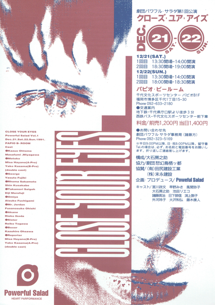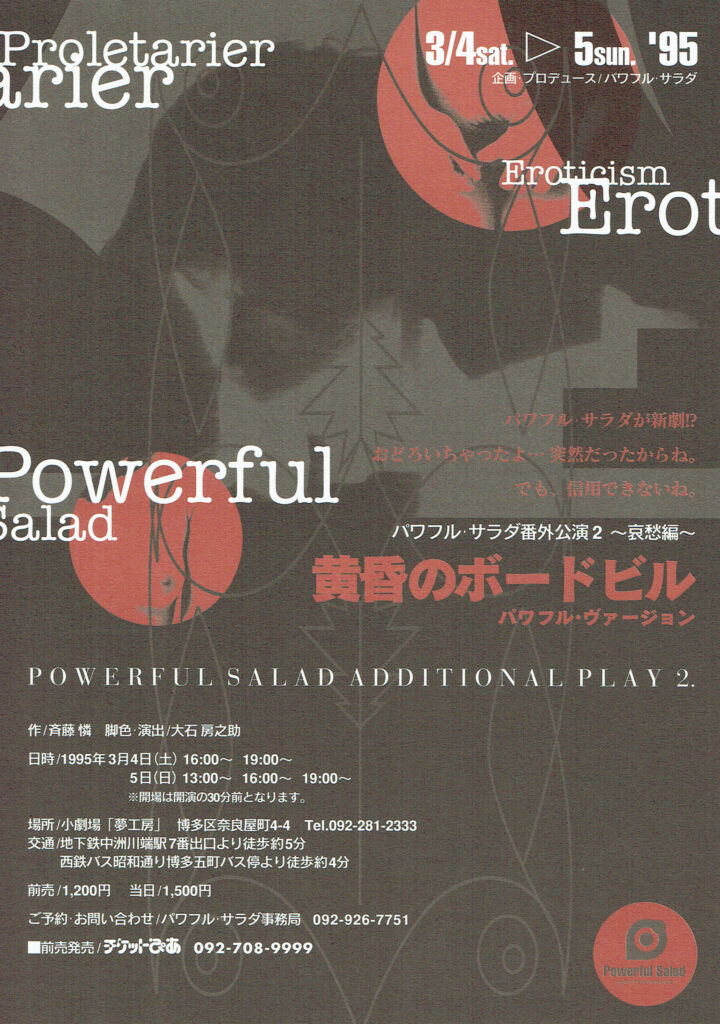「Powerful Salad」は東京で芝居をしていた大石房之助が、福岡に戻り結成した劇団である。1990年から1995年の5年間、福岡市で活動していた。