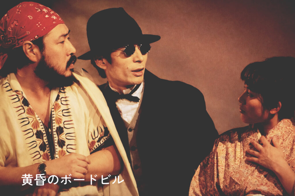 大石:最終公演は若手のメイン役者が抜けたので、方向性を変えて斎藤憐さんの『黄昏のボードビル』。これは個人的に思い入れのある戯曲で。パワフルサラダらしからぬ大人っぽい仕上がりになりました。思い出すのは、中学の時の同級生のマヤ北島という男が芝居小屋時代からずっと観に来てくれてて(途中まで同級生の大石とは知らなかったらしいが)、辛口の北島が珍しく気に入ってた。そんなこともあって、まぁ、年も取ってきたしこのスタイルもありかなとも思ってました。ただ次は和田憲明さんの『アリゲーターダンス』をやろうかなって考えてたんですが、なんか忙しくなってきてフェードアウトしてしまいましたね。