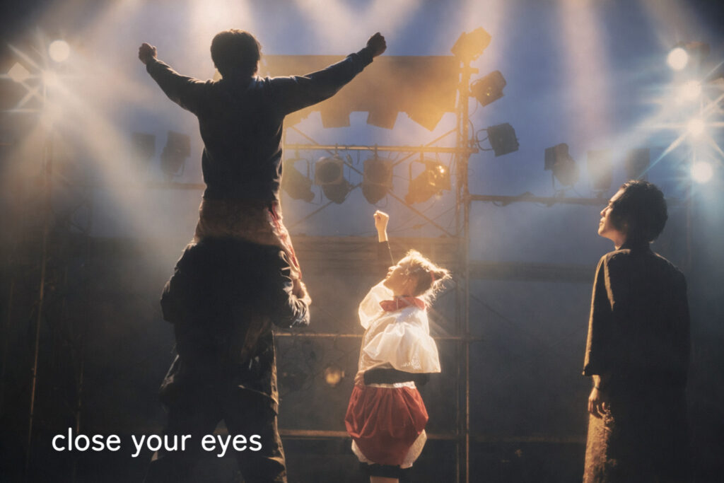 大石:僕は音楽から入ってることもあって、芝居を作るにあたっても照明とか音響とかそういうことを同時に考えてしまう。芝居を作るというよりMVを作っているような感覚。この場面の後はどんな場面があると客が「おっ!」と感じるかとか。このシーンをこんな照明でこんな曲を入れると数ヶ月の時間の経過が感じられるなとか。